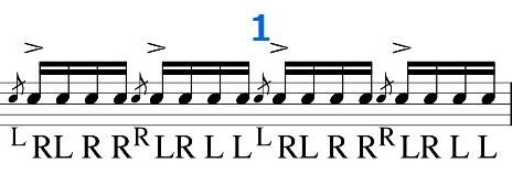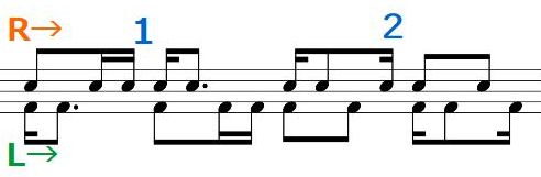 ポイントは四打目のフラムを叩く「R]右手の素早いアップストロークです。
