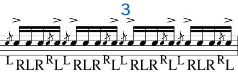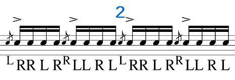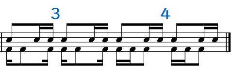 3つ目は、交互打ちの一打目と四打目にフラムとアクセントをつけたもので、