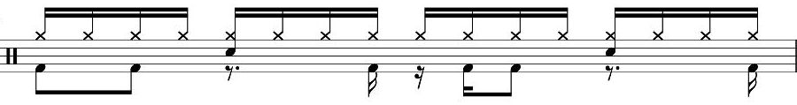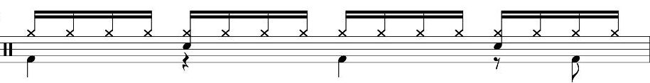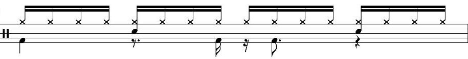 一番最後の16分音符裏のキックからド頭にかけても、キック二発が入っています。