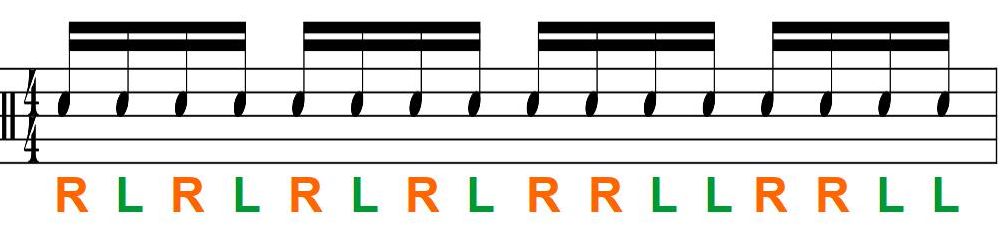 シングルストロークとダブルストロークを交互に叩くことで、音量やタイミング、手順の切り替えの良い練習になります。