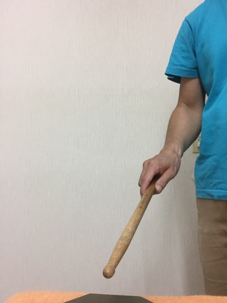 一打叩いた後、すぐに手のひらを開くようにして、スティックのバウンドをゆるします。